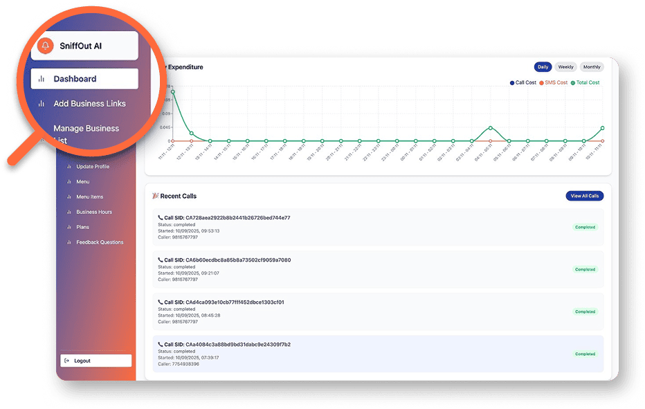 Stay in control with SniffOut AI’s smart dashboard – a single platform that brings all your important insights together.